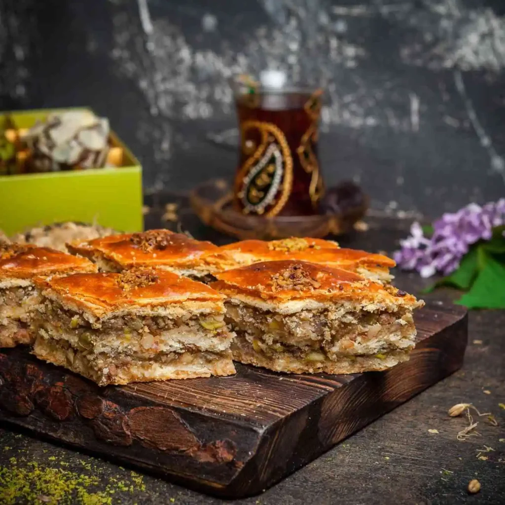 - Nuts: Most commonly pistachios or walnuts, with almonds used less often. Pistachios are typical in Turkish and Middle Eastern styles, while walnuts appear more in Greek and Balkan versions.